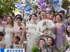 “五一”假期,婚庆市场又迎来了传统高峰季。如今婚礼的内容、形式越来越个性化,涌现出了多种婚礼新样态。 在上海长宁区的一家花园餐厅,一场小型户外草坪婚礼即将开始。记者观察到,这场婚礼规模不大,但在造景布置上却很精致,随处可见搭配好的小巧花团,加上甜品、饮品的陈列,...